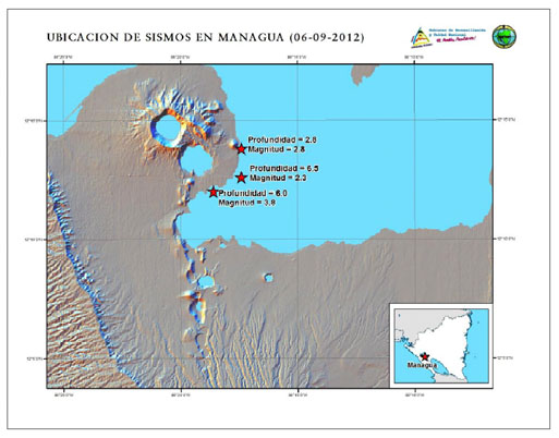 «INETER informa que el día de hoy, 6 de Septiembre del 2012, a partir de las 4.27 p.m. hora local, la Red Sísmica Nacional ha detectado una serie de sismos localizados entre el volcán Apoyeque y el Lineamiento Nejapa Miraflores, en la ciudad de Managua», reza el informe.