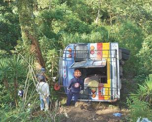 Sin embargo, los excursionistas, al tomar la vía alterna y en una curva muy cerrada, el chofer perdió el control de la camioneta cuando a esta se le atoró la varilla de dirección, lo que causó el accidente, afirma Dávila. El vehículo cayó de costado.