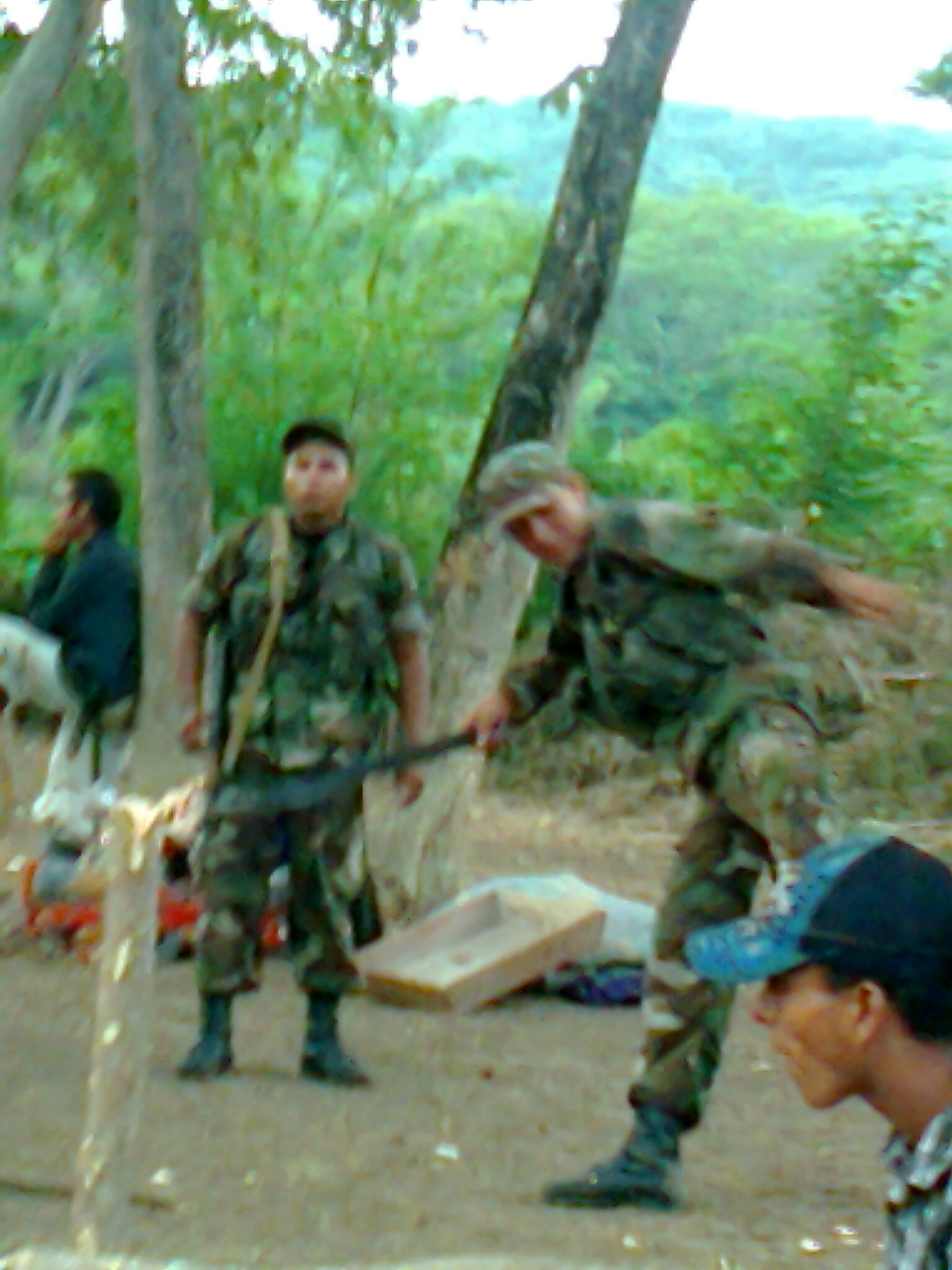 La mujer de leyes nos envió fotos tomadas con celulares por los cooperados, en las que ella identifica al teniente Ríos destruyendo pequeñas chozas que habían sido levantadas en predios que pertenecen a la comunidad y de los que repentinamente se quieren apoderar los militares, de acuerdo con Guevara.