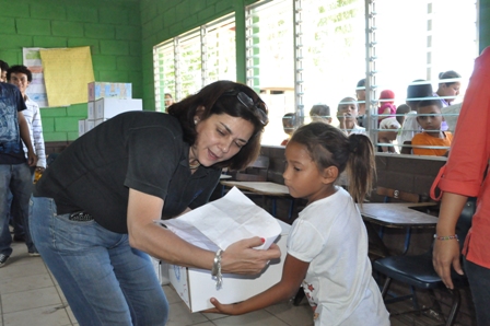 Sandra Carrasquilla, directora ejecutiva de la Fundación Chinandega 2001, explica que el objetivo de esta entrega de regalos es motivar a los educandos a mejorar su nivel académico y mantener la retención escolar.