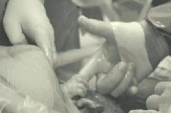 Una impresionante fotografía que capta el momento en que un bebé recién nacido sale del vientre de su madre aferrándose al dedo del médico que le está ayudando a nacer, se ha convertido en uno de los primeros éxitos virales de 2013 tras su publicación en la página de Facebook de sus padres.