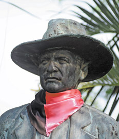 Al abandonar la carretera y doblar hacia Niquinohomo –que significa en lengua chorotega “valle de guerreros”– aparece en la entrada una gran estatua de Sandino con su pañuelo rojinegro en el cuello, entre palmeras y vegetación tropical. Por las calles del pueblo, que mantiene mucho de su ambiente colonial, se ven cañas muy altas enarbolando banderas sandinistas. Todavía viven allí unos ochenta ex combatientes y una anciana que lo conoció.