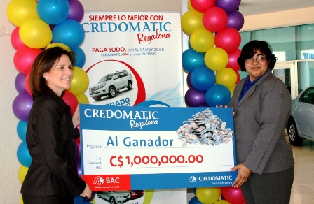 Todos los tarjetahabientes de crédito o débito de Credomatic o BAC acumularon automáticamente acciones por cada C$50 de compras con sus Tarjetas de crédito o débito realizadas entre el 15 de octubre 2012 y el 31 de enero 2013. La feliz ganadora podrá escoger entre tres increíbles premios: una camioneta Prado 2013, dos autos Corolla 2013 ó un millón de córdobas.