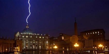 La descarga impactó sobre la cúpula de la basílica de San Pedro horas después que Benedicto XVI anunciara su retiro. La imagen desencadenó todo tipo de especulaciones y comentarios en las redes sociales.