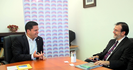 El nuevo representante del Fondo Monetario Internacional, doctor Juan Fernando Zalduendo, visitó al presidente de la Cámara de Comercio Americana de Nicaragua, Diego Vargas Montealegre, en el primer encuentro que sostuviera el funcionario del organismo financiero internacional con el sector privado organizado en AmCham.