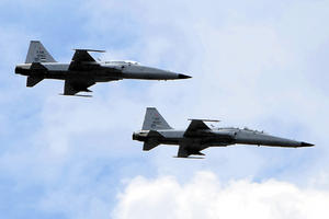 Un F-5 puede romper la barrera del sonido (1,200 kilómetros por hora), aunque normalmente, en el territorio nacional, se le exigen que desarrolle hasta los 600 kilómetros por hora.