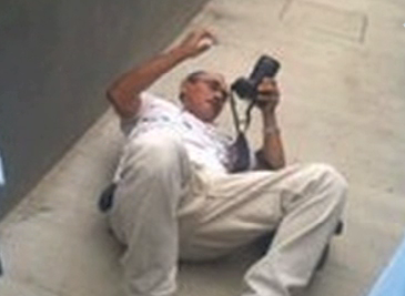 El veterano fotógrafo Manuel Esquivel, yace en el suelo tras ser expulsado por la fuerza del Complejo Judicial de Managua.
