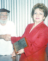 La Dra. Nydia Palacios Vivas, una de las ex profesoras del René Schick, recibe un reconocimiento del poeta Ernesto Cardenal.