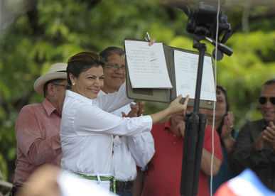 El traje blanco con cinto verde que vistió la presidenta Chinchilla durante su visita a Nicoya desencadenó un zafarrancho en el plenario de la Asamblea Legislativa.