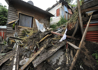 El derrumbe ocurrió el lunes en la noche en el barrio Las Gradas de La Carpio, en La Uruca, San José, debido a un mal manejo de las aguas en la ladera este de la comunidad.