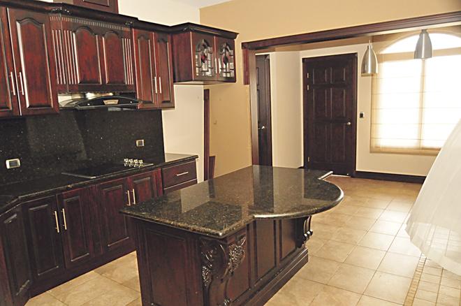 La lujosa cocina de la mansión de El Palidejo en Costa Rica hecha con materiales importados al igual que el resto de la vivienda.