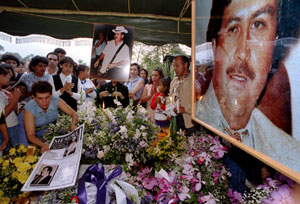 Escobar murió el 2 de diciembre de 1993, acorralado y abatido por la Policía, cuando trataba de huir por los tejados de una casa de Medellín. La imagen de su voluminoso cuerpo sin vida entre las tejas y el semblante sonriente de los agentes del llamado » Bloque de Búsqueda » retornó hoy a todos los medios de comunicación.