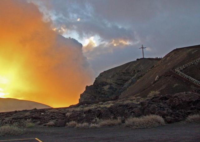 Esta cruz, situada al borde de uno de los cráteres, es la llamada “Cruz de Bobadilla” en honor al misionero padre Francisco Bobadilla.