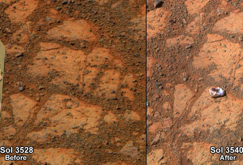 «Todavía no hemos encontrado el hueco que dejó la roca una vez desplazada pero pensamos que debe estar en un lugar oculto por los paneles solares de Opportunity», añadió.