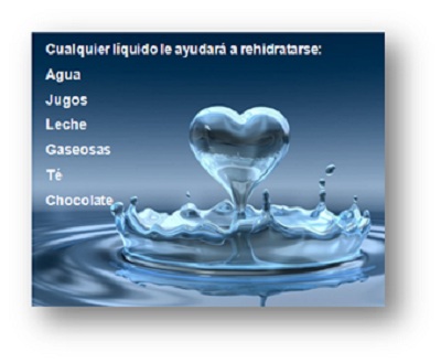 Tome en cuenta que a veces, la charla, la compañía o el rato ameno es un distractor para no hidratarse. Cada actividad física requiere de hidratación. En ese caso cualquier tipo de líquido como agua, jugos, leche, gaseosas, té, chocolate le mantendrá su organismo hidratado. “El consumo de frutas, verduras y los carbohidratos son indispensables para el movimiento”, aconseja la nutricionista.