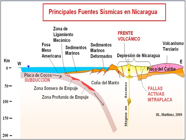 Los terremotos se dan en fallas inversas o fallas de empujes asociadas a una zona de actividad somera y a una zona de actividad profunda, denominadas de “Zona Somera de Empuje” (de 0 hasta 20, 40 km de profundidad) y “Zona Profunda de Empuje” ( de 60 a 80 o hasta 200 km de profundidad).