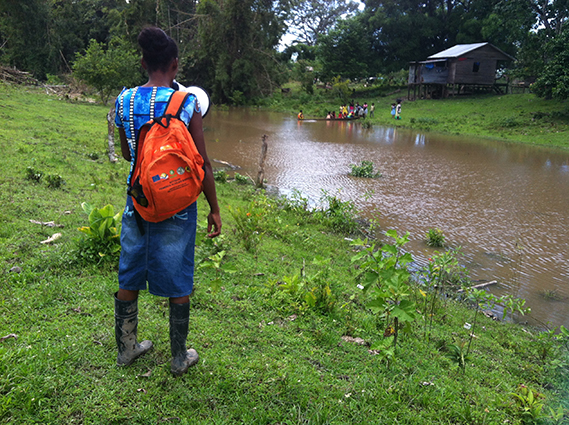 “Alerta” es la única palabra que entiendo de su dialecto miskito, pero lo que dice parece efectivo porque mujeres y niños se ponen los chalecos salvavidas y corren hacia el otro lado del poblado. Allí se colocan en fila, desde los más pequeños a los más mayores, y las mujeres los trasladan en barca hasta lo que se ha señalizado como punto seguro.
