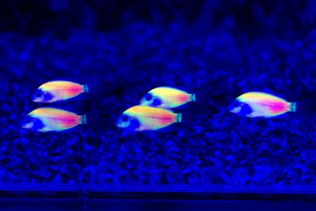 Investigadores de la Academia Sínica, el principal instituto de investigaciones de la República de China, en colaboración con universidades locales y una compañía exportadora de peces tropicales, han producido los peces fluorescentes más grandes del mundo.