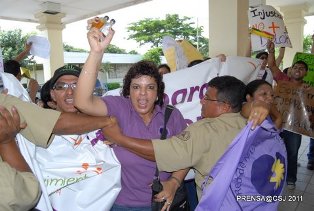 En esta acción contra los policías se destacó Jairo Contreras, dirigente de Rejudin, quien cerveza en mano abofeteó en un par de ocasiones al señor Fernando Ramos, miembro del cuerpo de protección física. Pero no sólo Ramos sufrió la rabia de los violentos activistas políticos de los derechos humanos, sino también otros como Virgilio Lara, Mario Guevara, Armando Hernández, Roberto Espinoza, Constantino Martínez y los policías Francisco Castillo, Pedro Mayán y Santos Morales, quienes también resultaron golpeados, bañados de cerveza y con las camisas rotas por la turba.