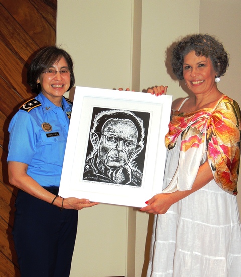 Pérez Silva, quien es la viuda del comandante Tomás Borge, fundador de la institución policial, entregó a Granera una xilografía del rostro de Borge, y expresó su satisfacción por este encuentro al afirmar que “siempre es un honor y una alegría inmensa encontrarnos con todos los policías, con los centinelas de la alegría del pueblo, de Tomás, pero sobre todo conversar con Aminta”.