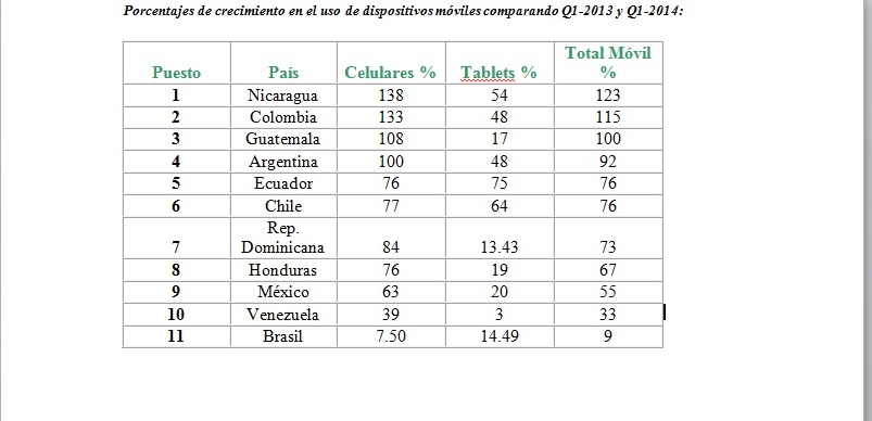 Nicaragua, Colombia y Guatemala lideran crecimiento en el uso de móviles para conectarse a Internet, según un informe sobre la invasión de los dispositivos móviles en Latinoamérica realizado por Guía Local.