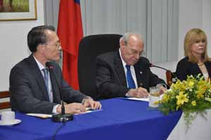 Esta donación fue entregada por el embajador de la República de Taiwán Sr. Chin-mu Wu y recibida por el vicepresidente Sr. Jaime Morales Carazo.