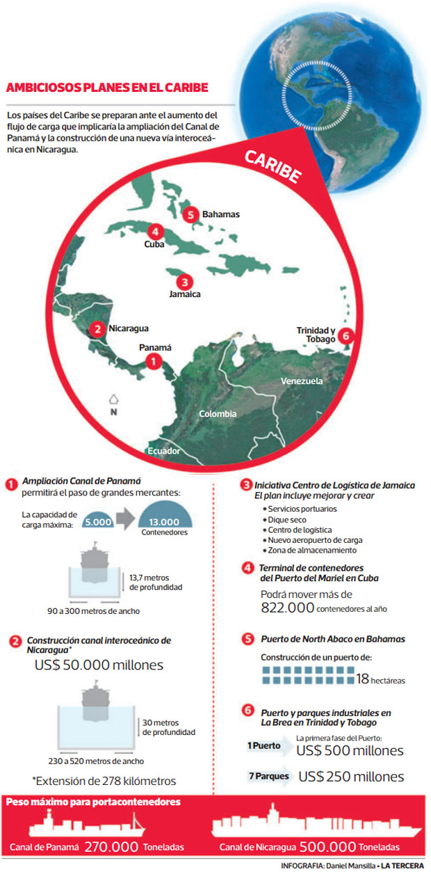 Pero Panamá y Nicaragua no son los únicos que sacan cuentas alegres. Avizorando las posibilidades que se abren con estas vías interoceánicas, especialmente en el área de los negocios logísticos, varios países del Caribe preparan ambiciosos proyectos para intentar sacar su tajada de la torta.