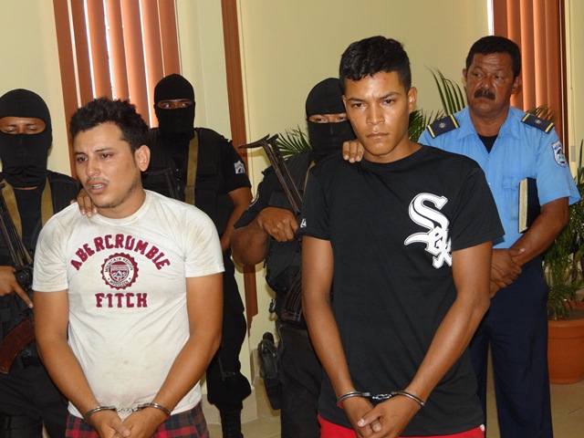 La Policía Nacional presentó a dos presuntos involucrados en un millonario asalto perpetrado el pasado 3 de marzo en las cercanías del barrio 10 de Julio, en contra del comerciante Sergio Corrales Blandón, quien viajaba con su esposa e hija.
