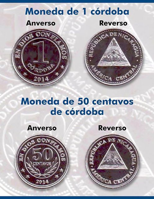 Las primeras tendrán la denominación «1 córdoba», la leyenda «en Dios confiamos», cuatro estrellas y el año de acuñación (2014) en el anverso, mientras que al reverso se podrá leer «República de Nicaragua» y «América Central», con el escudo del país en el centro.