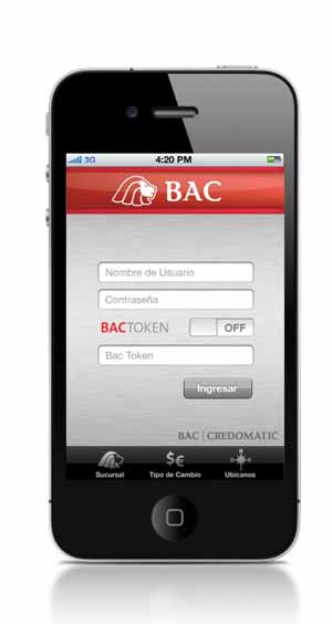 BAC presenta a sus clientes una nueva y útil aplicación para iPhones y iPADs, llamada iBAC, que les permitirá consultar sus cuentas bancarias y tarjetas de crédito, realizar transferencias y pagos, así como consultar el tipo de cambio.
