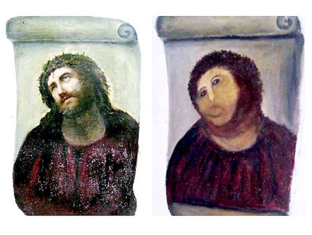 No obstante, los resultados fueron catastróficos y el Ecce Homo pasó a ser llamado Ecce Mono por los ingeniosos cibernautas que desataron una cadena de comentarios sarcásticos. Y es que el Cristo de la pintura ahora parece un mono por obra y gracia de la anciana «restauradora».